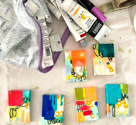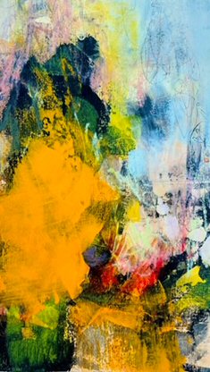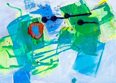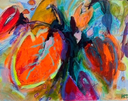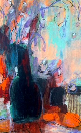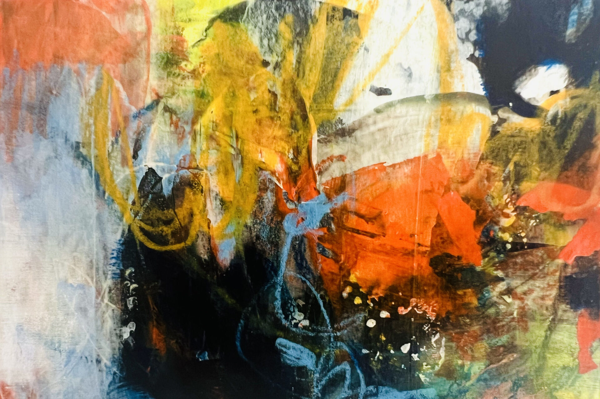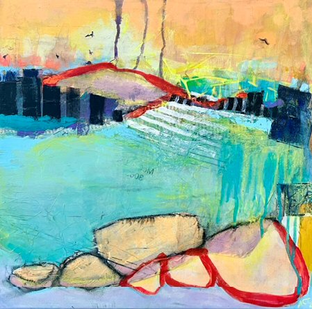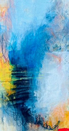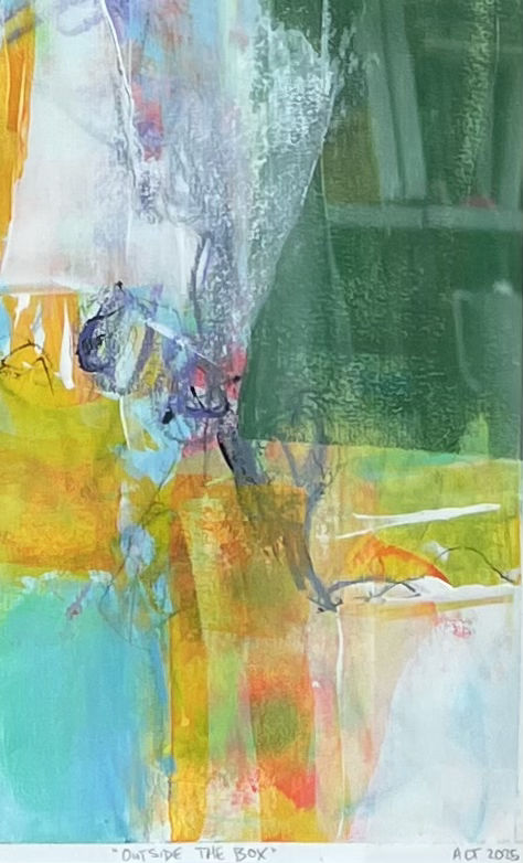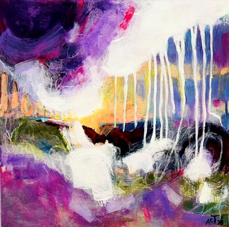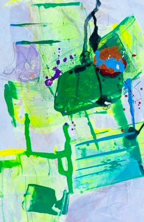 She returned to painting in 2022 through classes at the Torpedo Factory, where she began experimenting with expressive mark-making and layering techniques. She quickly fell in love with abstraction, which gave her space to focus on play and experimentation and discovering what each piece wanted to be rather than forcing it towards a pre-determined outcome.