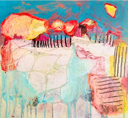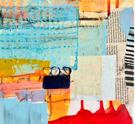 Anne Terry is a mixed-media abstract artist based in Washington, DC and Luray, VA. Her paintings emerge through layers of acrylic, collage, and drawing, where structured elements such as stripes, blocks, and fragments of text sit alongside looser marks, drips, and erasures. Her work explores the tension between control and intuition, and the point where composition gives way to discovery.